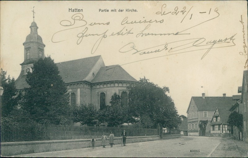 Alte Ansichtskarte aus Hatten (Bas-Rhin), beschrieben am 22.01.1919.
