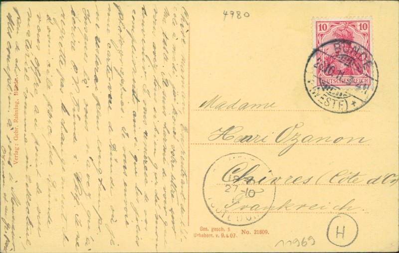 Alte Ansichtskarte aus Bünde, gelaufen am 26.10.1911.