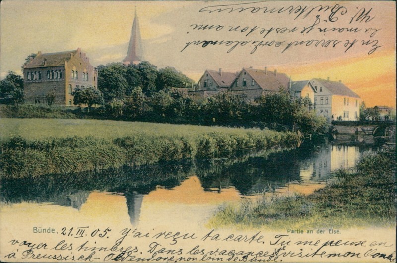 Alte Ansichtskarte aus Bünde, gelaufen am 21.03.1905 von Bünde (Westf.) nach Versailles.