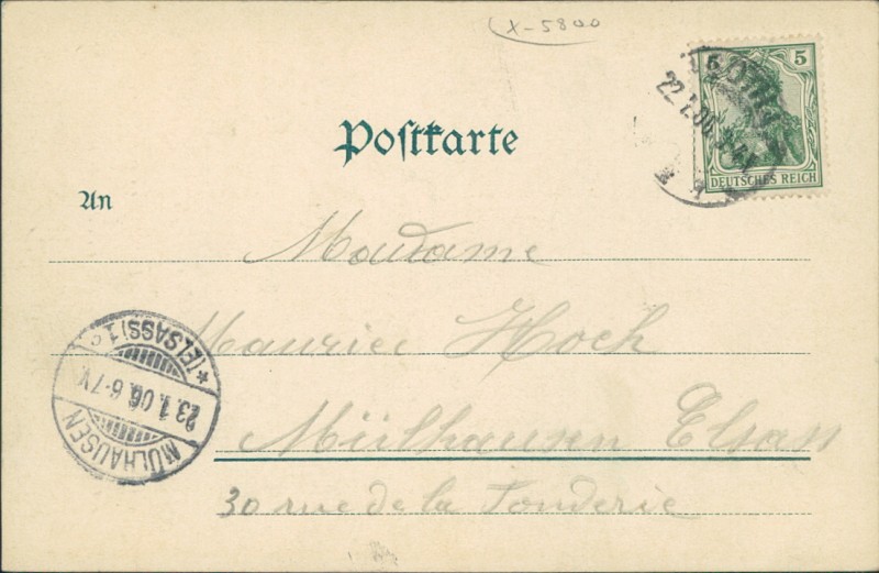 Alte Ansichtskarte aus Gotha, gelaufen am 22.01.1906 von Gotha nach Mülhausen Elsass. Ankunft in Mülhausen Elsass am 23.01.1906.