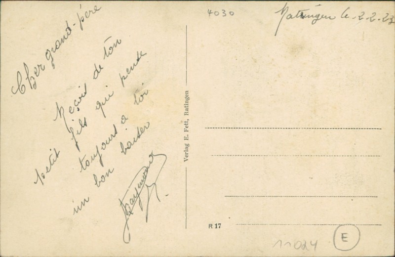 Alte Ansichtskarte aus Ratingen, beschrieben am 02.02.1923.