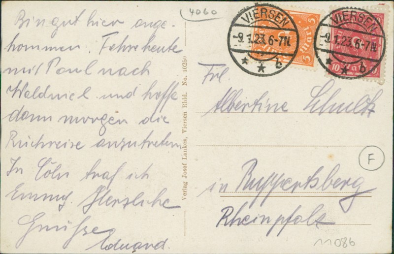 Alte Ansichtskarte aus Viersen, gelaufen am 09.01.1923 von Viersen nach Ruppertsberg.