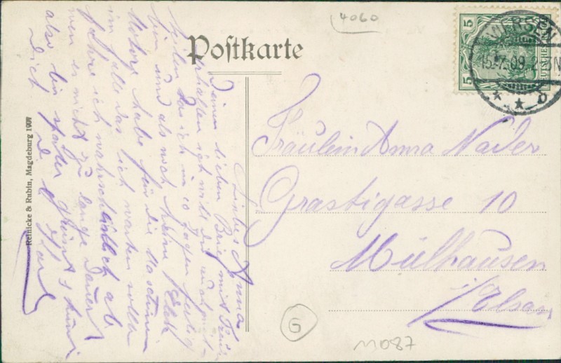 Alte Ansichtskarte aus Viersen, gelaufen am 15.07.1909 von Viersen nach Mülhausen i/Elsass.