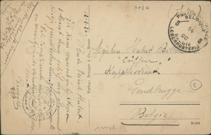 Alte Ansichtskarte aus Moers, gelaufen um 1920.