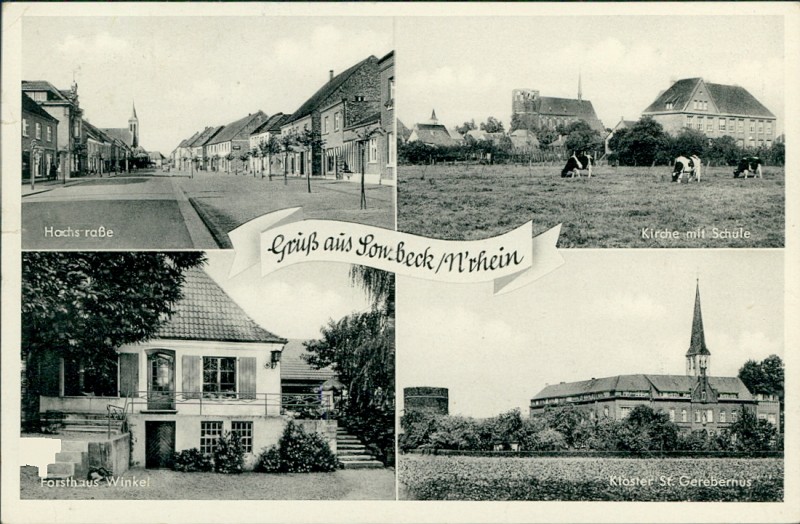 Alte Ansichtskarte aus Sonsbeck, gelaufen am 13.07.1961 von Sonsbeck nach Wirzenborn.