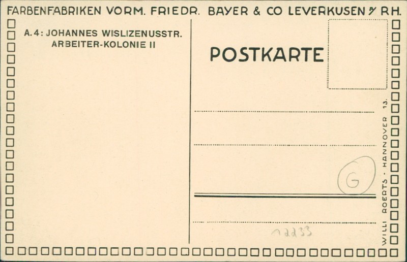 Farbenfabriken vorm. Friedr. Bayer & Co. A. 4: Johannes Wislizenusstr., Arbeiter-Kolonie II