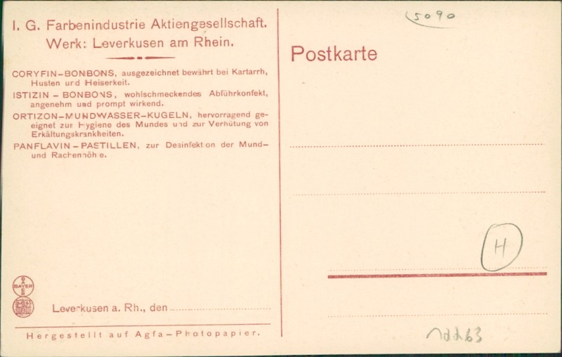 Alte Ansichtskarte aus Leverkusen, ungebraucht, gedruckt um 1927.
