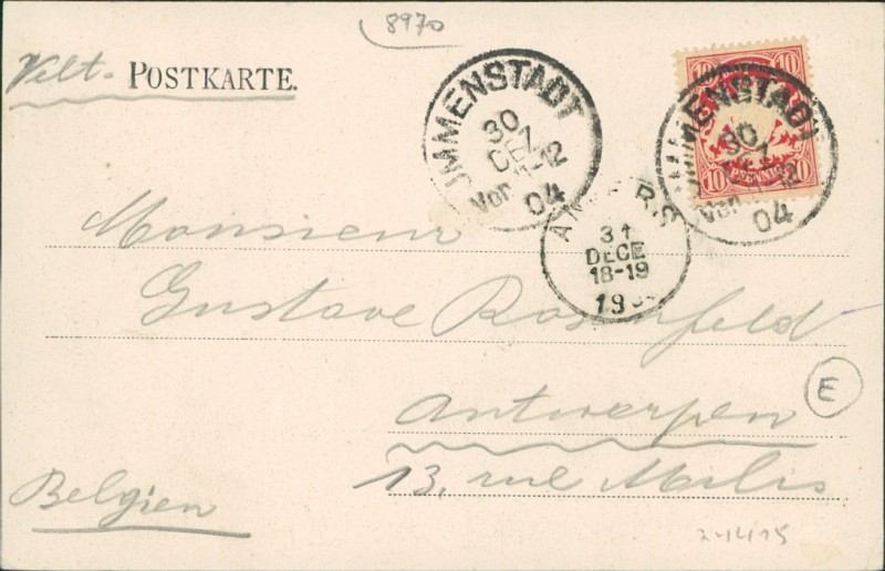 Alte Ansichtskarte aus Immenstadt i.Allgäu, gelaufen am 30.12.1904 von Immenstadt nach Antwerpen.