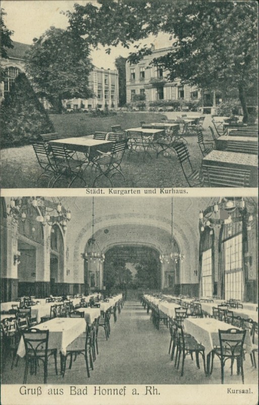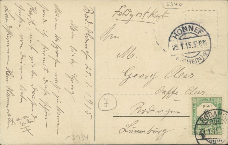 Alte Ansichtskarte aus Bad Honnef, gelaufen am 25.01.1915 von Honnef (Rhein) nach Rodingen.