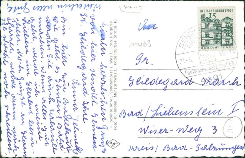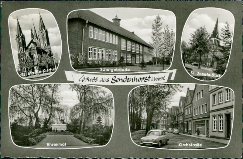 Alte Ansichtskarte aus Sendenhorst, gelaufen am 21.06.1965 von Sendenhorst nach Bad Liebenstein.