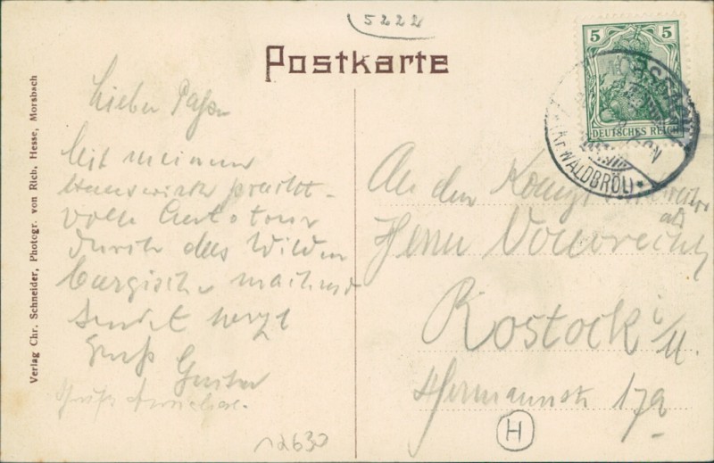 Alte Ansichtskarte aus Kirchen (Sieg)-Friesenhagen, gelaufen um 1910 von Morsbach nach Rostock.