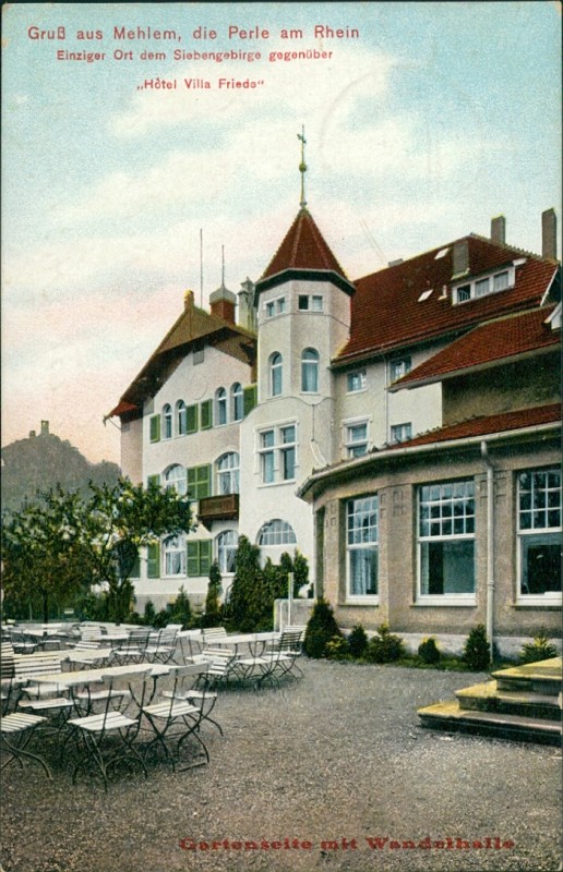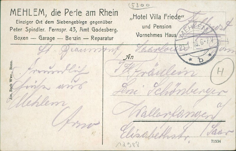 Alte Ansichtskarte aus Bad Godesberg-Mehlem, gelaufen am 23.01.1918 von Mehlem nach Wallerfangen.