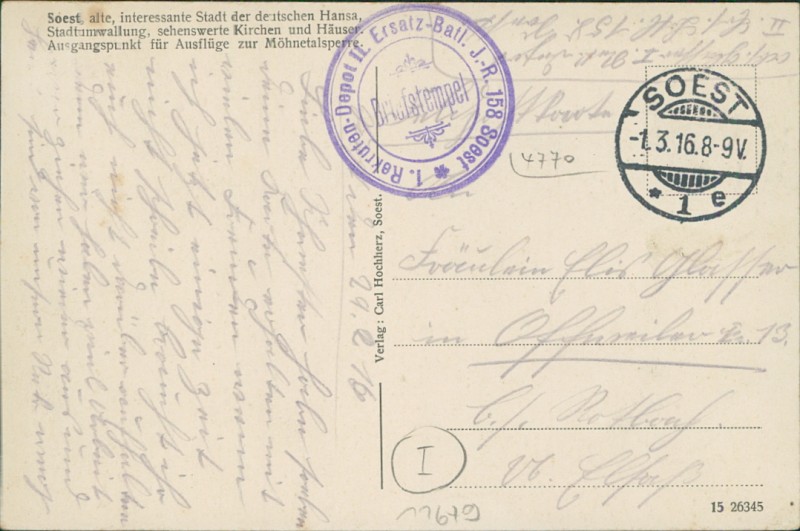 Alte Ansichtskarte aus Soest, gelaufen am 01.03.1916.