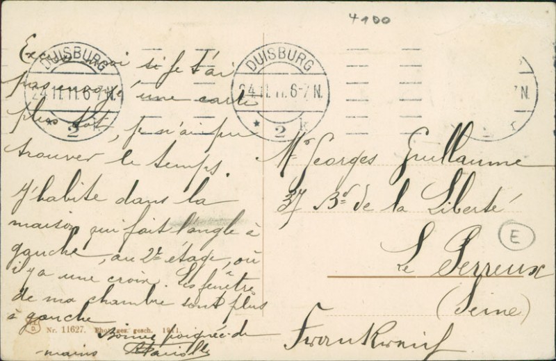 Alte Ansichtskarte aus Duisburg, gelaufen am 24.11.1911.