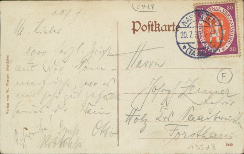 Alte Ansichtskarte aus Nastätten, gelaufen am 20.07.1920.
