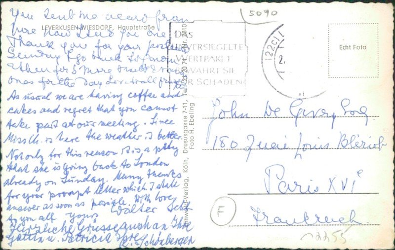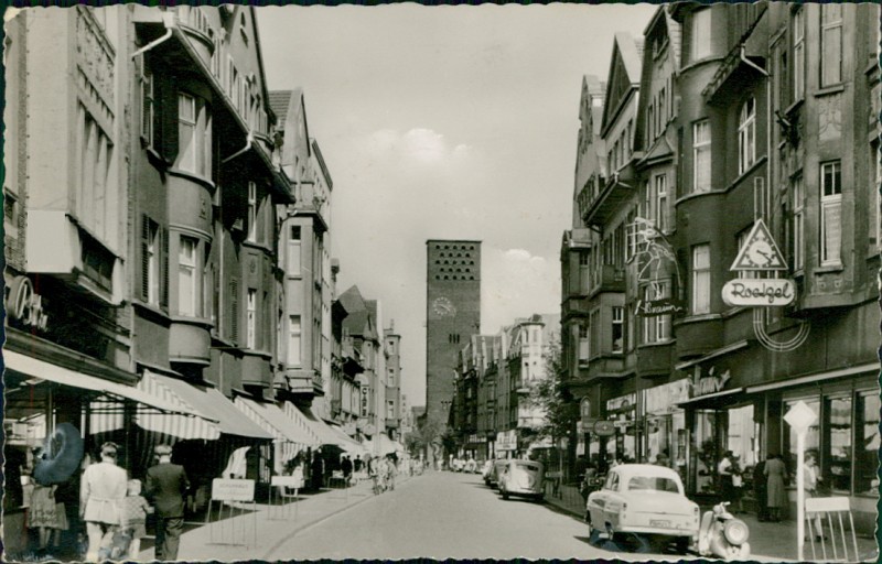 Alte Ansichtskarte aus Leverkusen-Wiesdorf, gelaufen um 1960.