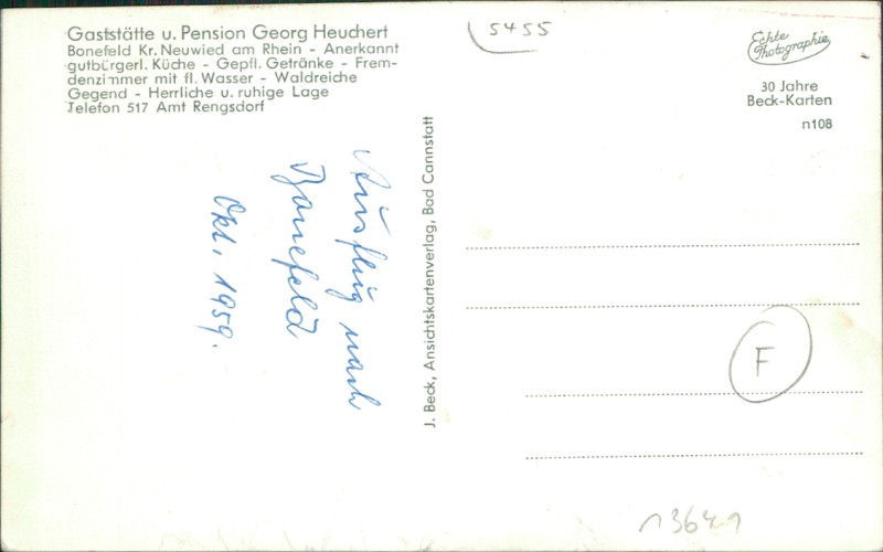 Alte Ansichtskarte aus Bonefeld (Rengsdorf), beschrieben um 1955.