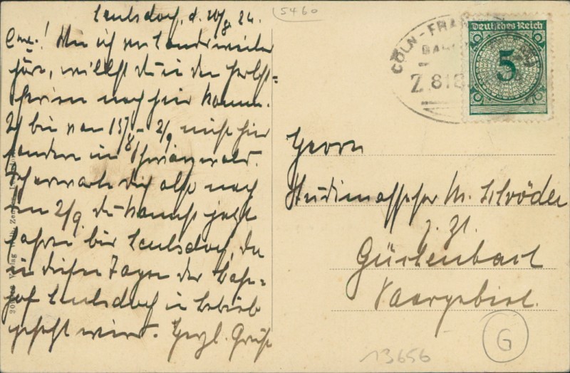 | Stempel | Cöln-Frankfurt (Bahnpost) |