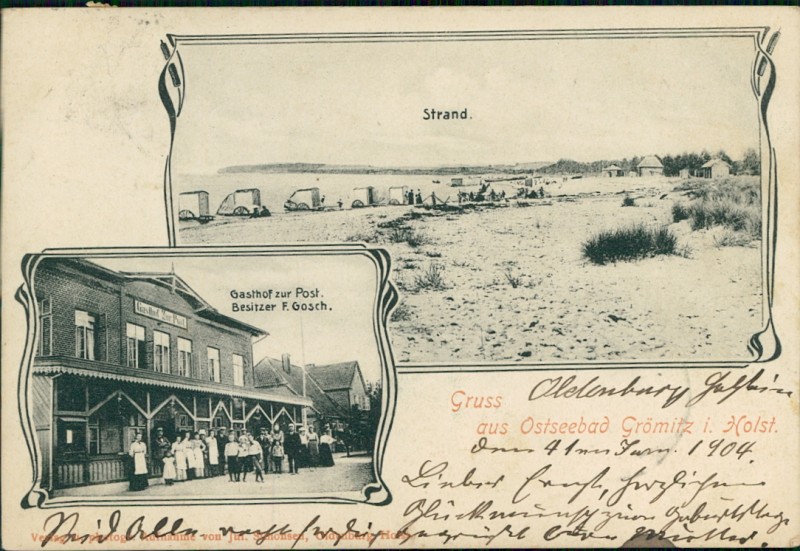 Alte Ansichtskarte aus Grömitz, gelaufen am 04.01.1904 von Oldenburg (Holstein) nach Neumünster. Ankunft in Neumünster am 04.01.1904.