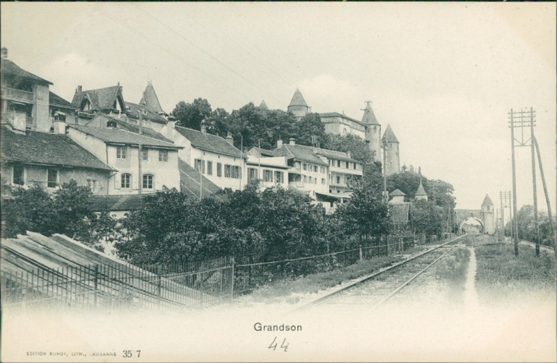 Alte Ansichtskarte aus Grandson, ungebraucht, gedruckt um 1905.