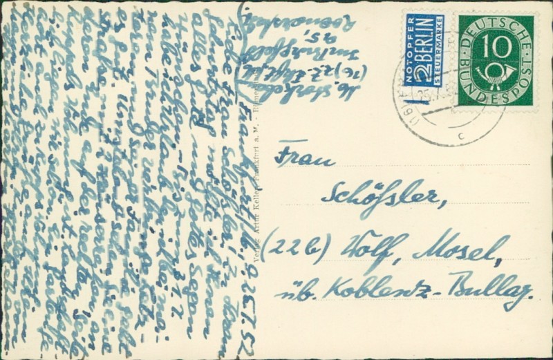 Alte Ansichtskarte aus Frankfurt am Main, gelaufen am 25.07.1952.