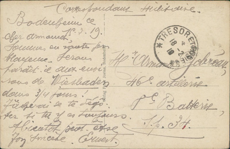 Alte Ansichtskarte aus Bodenheim, gelaufen am 18.02.1919.