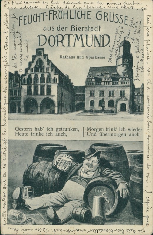 Feucht-fröhliche Grüsse aus der Bierstadt Dortmund. Rathaus und Sparkasse
