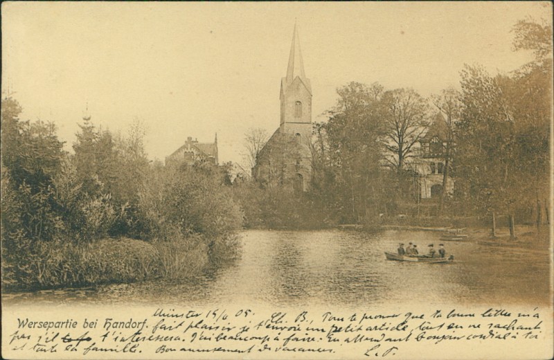Alte Ansichtskarte aus Münster-Handorf, gelaufen am 15.04.1905 von Münster (Westf.) nach Straßburg i. Els.