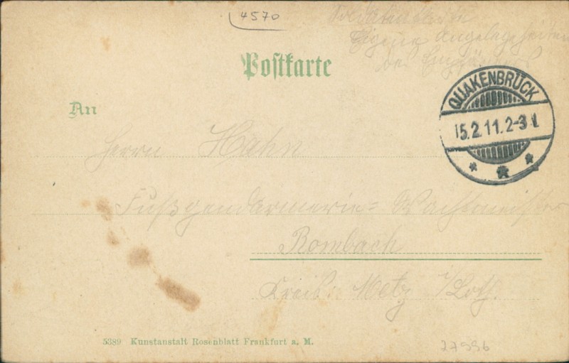 Alte Ansichtskarte aus Quakenbrück, gelaufen am 15.02.1911.