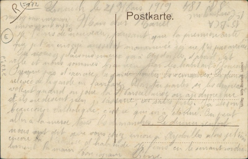 Alte Ansichtskarte aus Linnich, beschrieben um 1919.