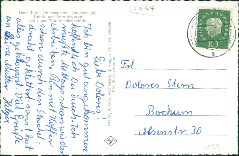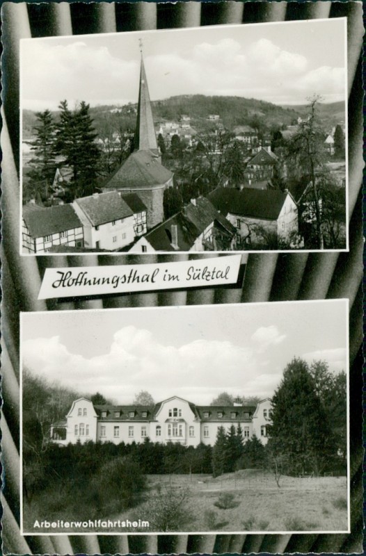 Alte Ansichtskarte aus Rösrath-Hoffnungsthal, gelaufen am 30.08.1960 von Hoffnungsthal nach Bochum.