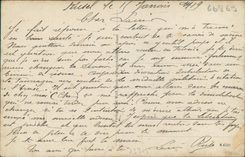 Alte Ansichtskarte aus Kusel, beschrieben am 13.01.1919.