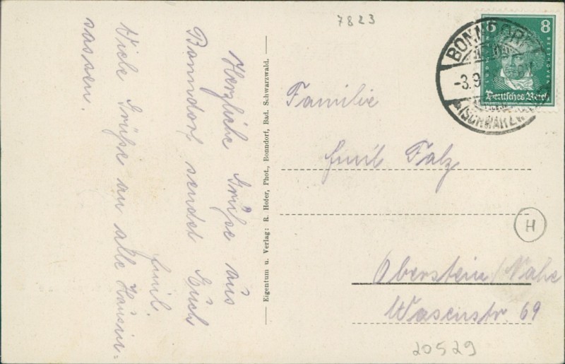 | Verlag | R. Hofer, Phot., Bonndorf, Bad. Schwarzwald |