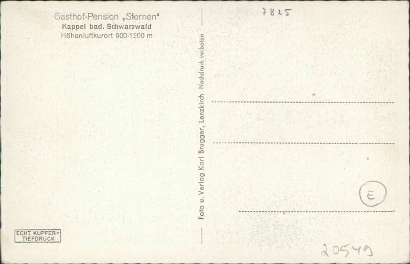 Alte Ansichtskarte aus Lenzkirch-Kappel, ungebraucht, gedruckt um 1928.