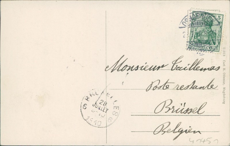 Alte Ansichtskarte aus Osnabrück, gelaufen am 28.07.1910 von Osnabrück nach Brüssel.