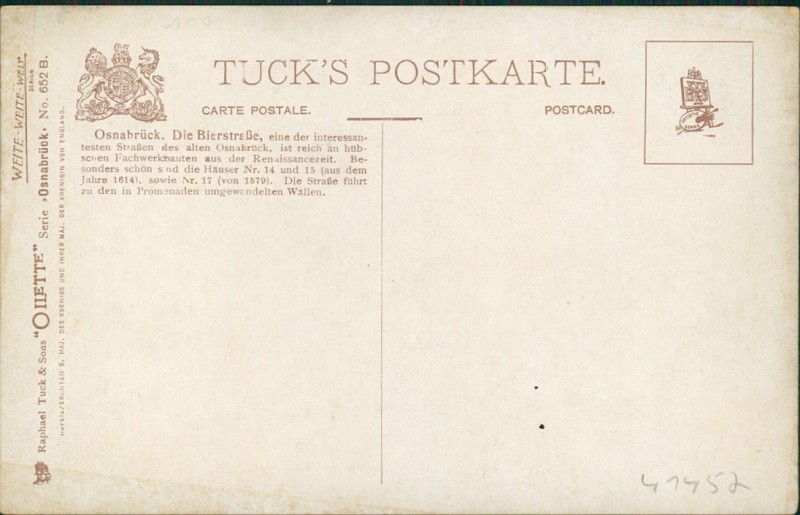 Alte Ansichtskarte aus Osnabrück, ungebraucht, gedruckt um 1910.