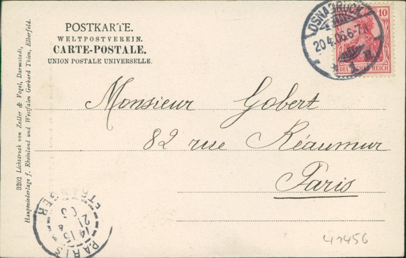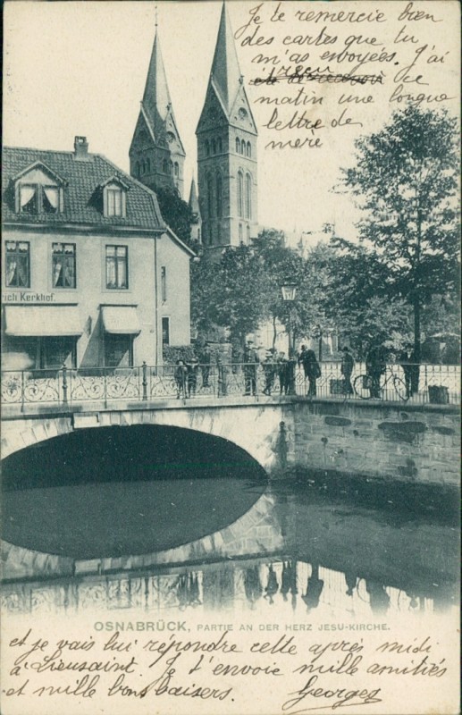 Alte Ansichtskarte aus Osnabrück, gelaufen am 20.04.1906 von Osnabrück nach Paris.