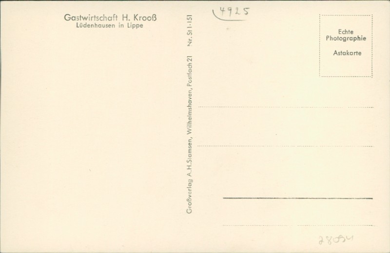 Alte Ansichtskarte aus Kalletal-Lüdenhausen, ungebraucht, gedruckt um 1950.