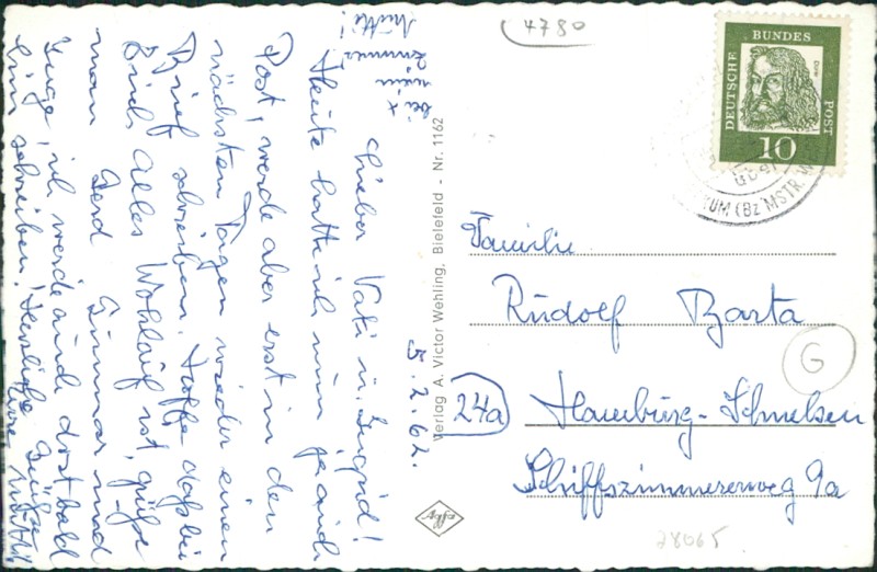 Alte Ansichtskarte aus Lippstadt-Bad Waldliesborn, gelaufen am 05.02.1962.
