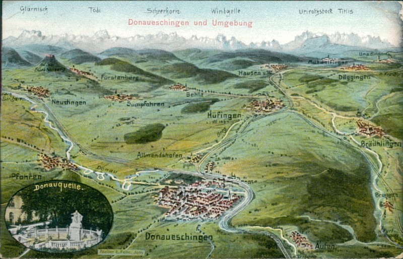 Donaueschingen und Umgebung aus der Vogelschau, Atelier E. Felle, Isny