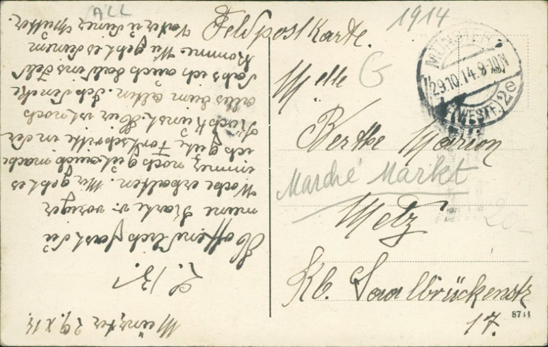 Alte Ansichtskarte aus Münster, gelaufen am 29.10.1914 von Münster (Westf.) nach Metz.
