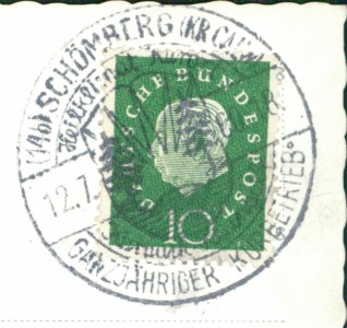 Alte Ansichtskarte aus Gesamtansicht, gelaufen am 12.07.1960 von Schömberg (Ortswerbestempel) nach Kaiserslautern.