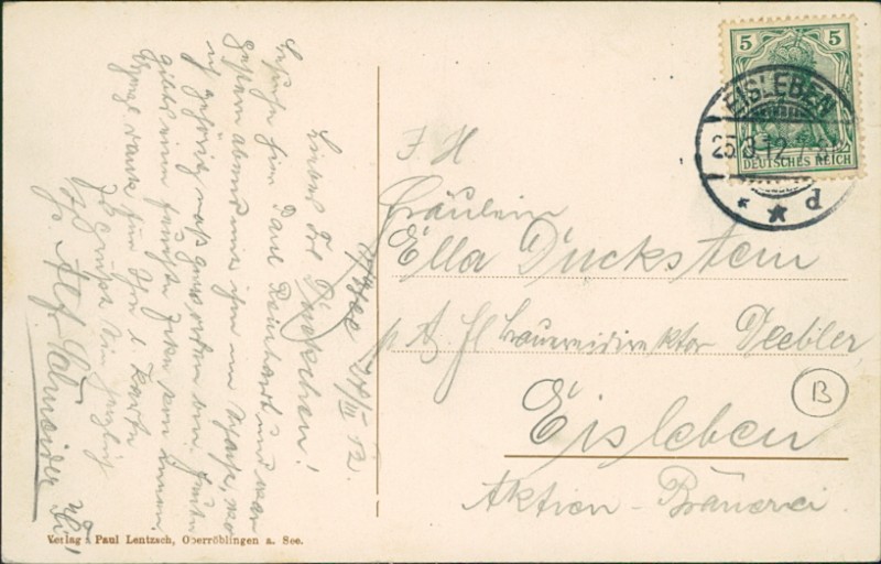 Alte Ansichtskarte aus Sangerhausen-Oberröblingen, gelaufen am 25.03.1912 von Eisleben nach Eisleben.