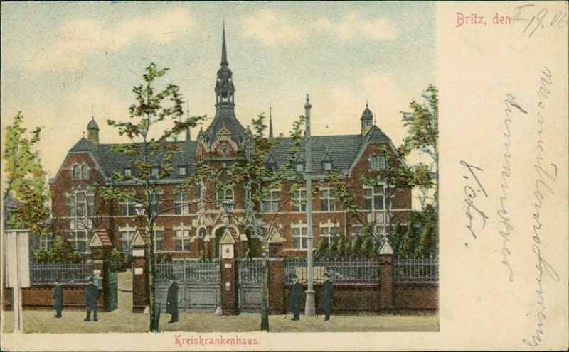 Alte Ansichtskarte aus Berlin-Britz, gelaufen am 04.09.1906 von Britz nach Paris.