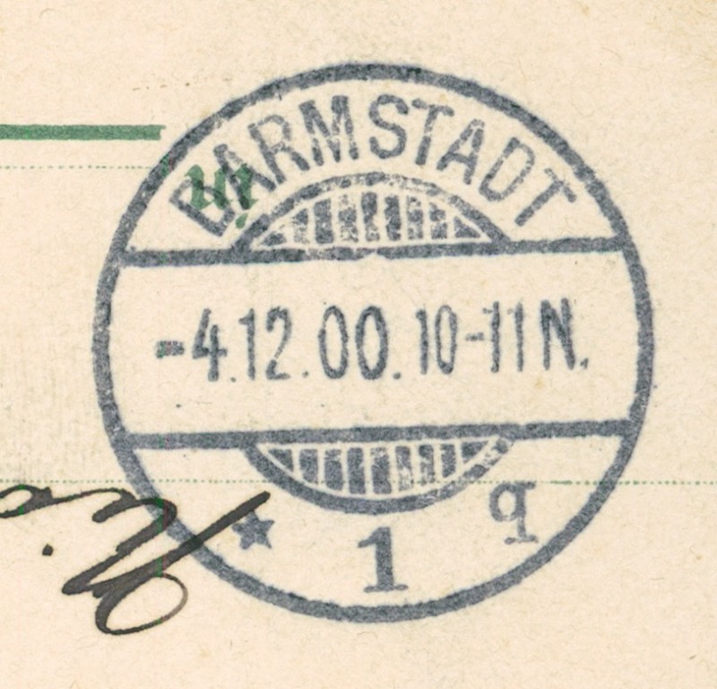 Alte Ansichtskarte aus Lauterbach (Hessen), gelaufen am 04.12.1900 von Lauterbach (Hessen) nach Darmstadt. Ankunft in Darmstadt am 04.12.1900.