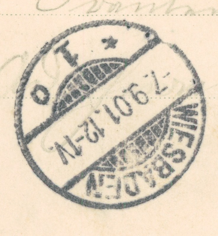 Alte Ansichtskarte aus Breitscheid, gelaufen am 06.09.1901 von Breitscheid (Dillkreis) nach Wiesbaden. Ankunft in Wiesbaden am 07.09.1901.