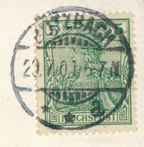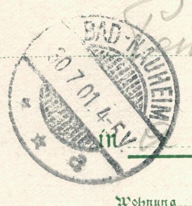 Alte Ansichtskarte aus Butzbach, gelaufen am 29.07.1901 von Butzbach nach Bad Nauheim. Ankunft in Bad Nauheim am 30.07.1901.