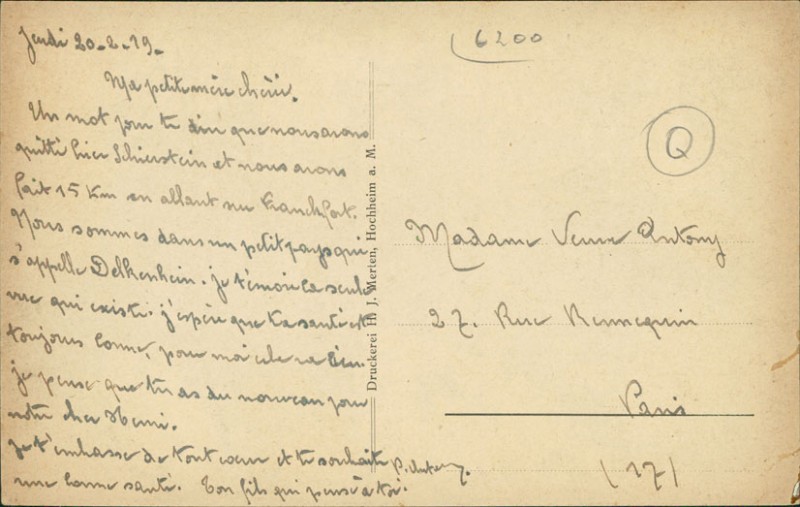 Alte Ansichtskarte aus Wiesbaden-Delkenheim, beschrieben am 20.02.1919.