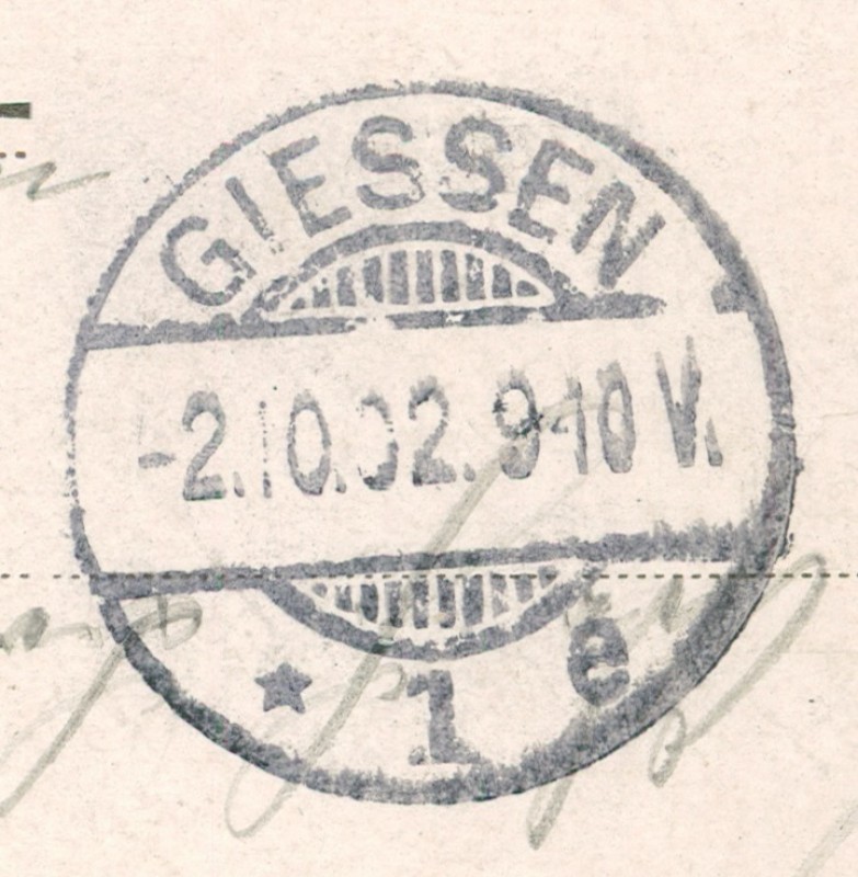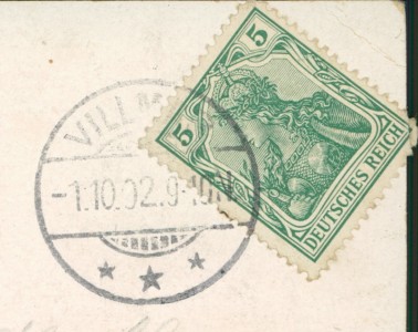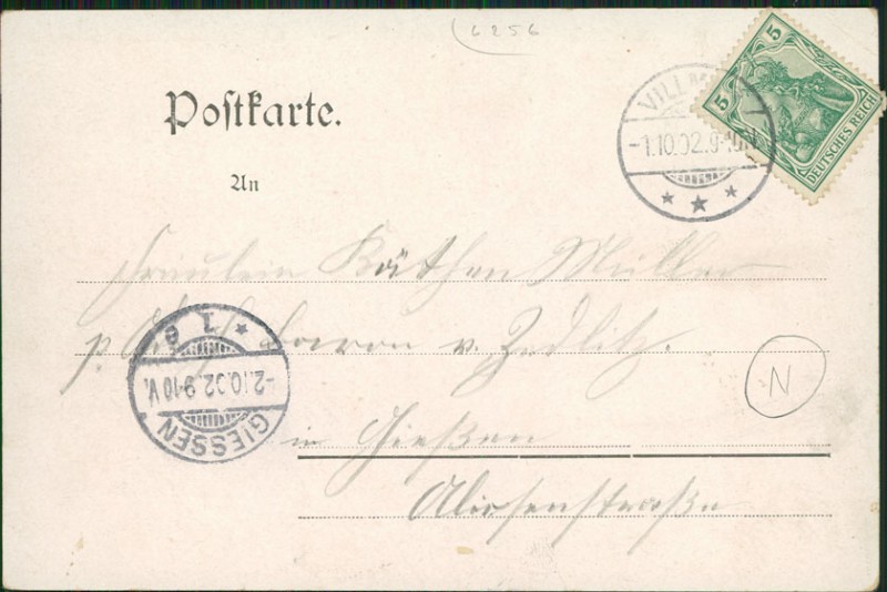 Alte Ansichtskarte aus Villmar, gelaufen am 01.10.1902 von Villmar nach Giessen. Ankunft in Giessen am 02.10.1902.