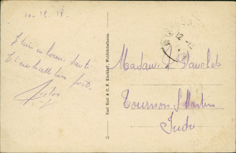 Alte Ansichtskarte aus Waldböckelheim, gelaufen am 12.12.1918.